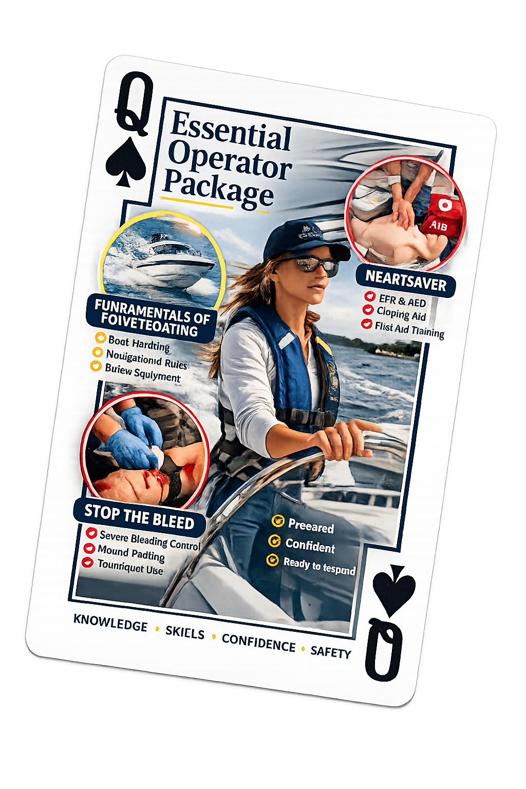 The Essential Operator Package is built on the understanding that safe boating requires both control of your vessel and the ability to respond to emergencies.